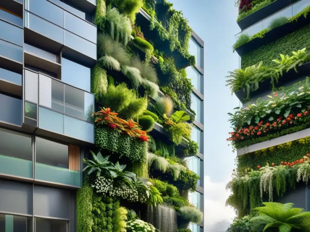 Impresionante rascacielos cubierto de jardines verticales, fusionando naturaleza y arquitectura en beneficios jardinería vertical arquitectura
